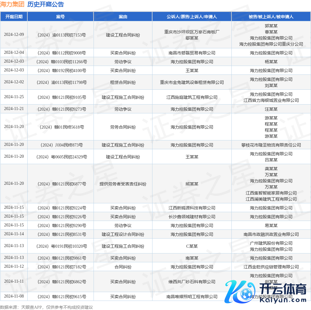 本站音信,凭据天眼查APP显现,近日公布了一则海力控股集团有限公司行为原告/上诉东说念主的开庭公告云开体育,预防执行如下: