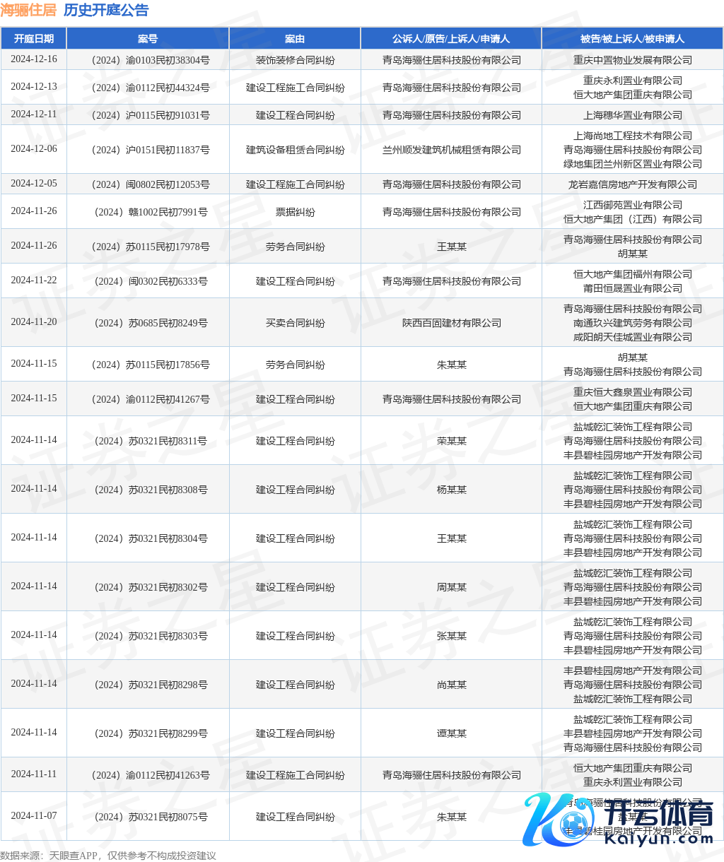 本站音问开云体育(中国)官方网站,凭据天眼查APP浮现,近日公布了一则青岛海骊住居科技股份有限公司行动被告/被上诉东说念主的开庭公告,详备实际如下: