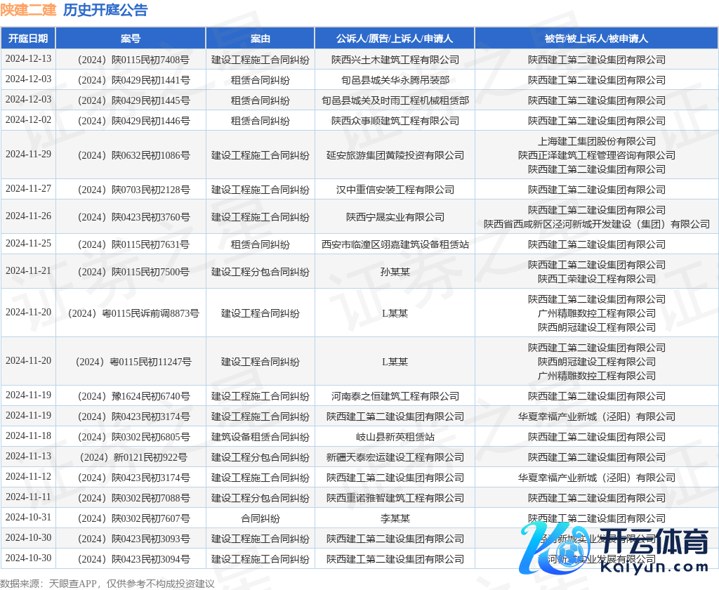 本站讯息,把柄天眼查APP表示,近日公布了一则陕西建工第二开采集团有限公司动作被告/被上诉东说念主的开庭公告,预防实质如下: