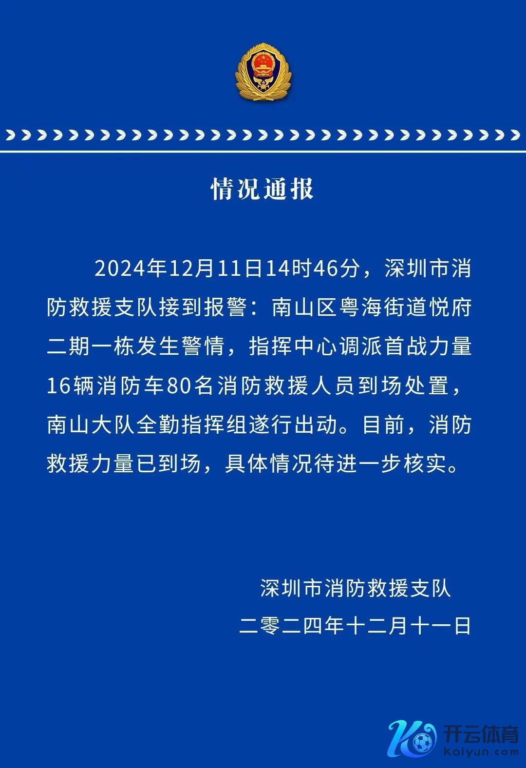 12月11日下昼,深圳湾悦府二期有楼层发生爆炸。深圳市消防救助支队发布通报称,12月11日14时46分,深圳市消防救助支队接到报警,南山区粤海街说念悦府二期一栋发生警情,辅导中心调派首战力量16辆消防车80名消防救助东说念主员到场处置,南山大队全勤辅导组遂行搬动。当今,消防救助力量已到场,具体情况待进一步核实。