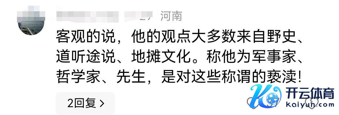 ——河南网友说:客不雅的说,他的不雅点大无数来自野史、闲言长语、地摊文化。称他为军事家、形而上学家、先生,是对这些称谓的亵渎!