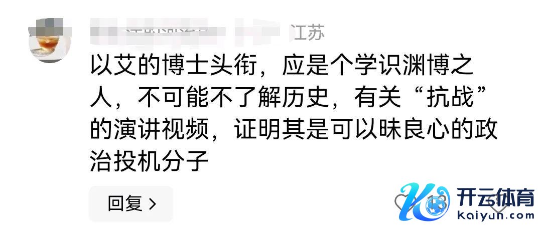 ——江苏网友:以艾的博士头衔,应是个学识富足之东谈主,不能能不了解历史,联系“抗战”的演讲视频,解释其是不错昧良心的政事投契分子。