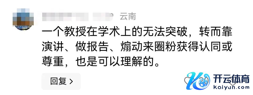 ——云南网友说:一个素养在学术上的无法冲破,转而靠演讲、作念阐发、挑动来圈粉得回认可或尊重,亦然不错富厚的。