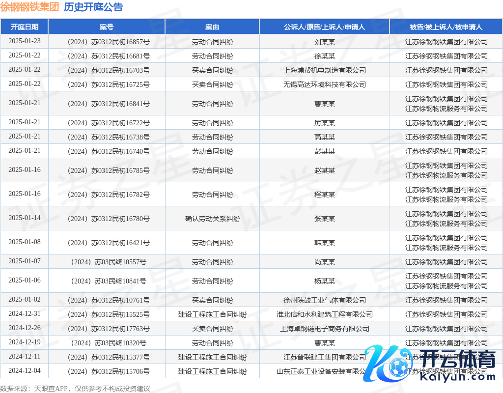 本站音信开云官网切尔西赞助商,凭证天眼查APP领路,近日公布了一则江苏徐钢钢铁集团有限公司算作被告/被上诉东谈主的开庭公告,防备施行如下: