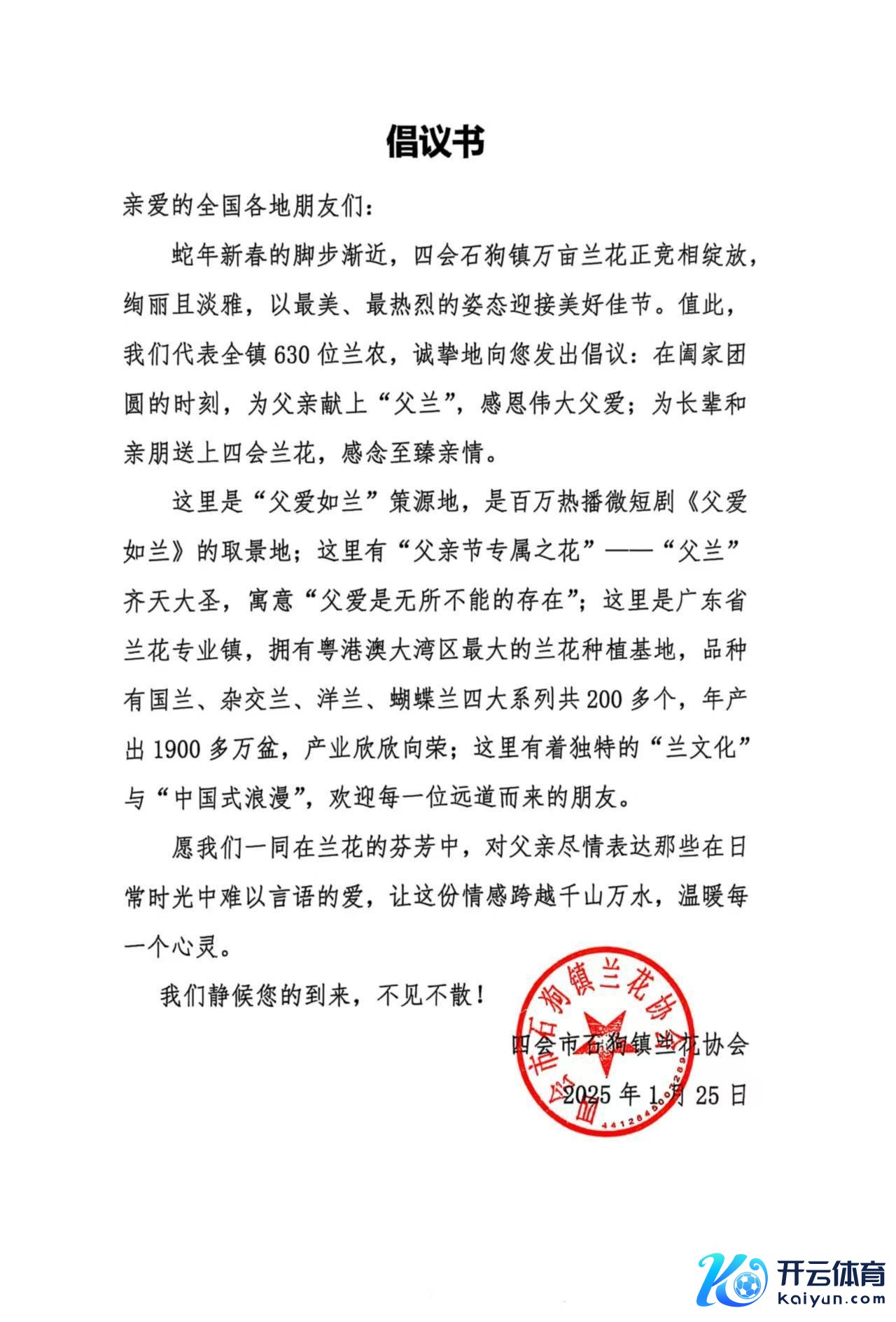 蛇年新春的脚步渐近,四会石狗镇万亩兰花正竞相绽开,瑰丽且高雅,以最好意思、最浓烈的姿态招待好意思好佳节。值此,咱们代表全镇630位兰农,赤诚地向您发出倡议:在阖家团圆的技巧,为父亲献上“父兰”,感德伟大父爱;为长者和亲友奉上四会兰花,感想至臻亲情。