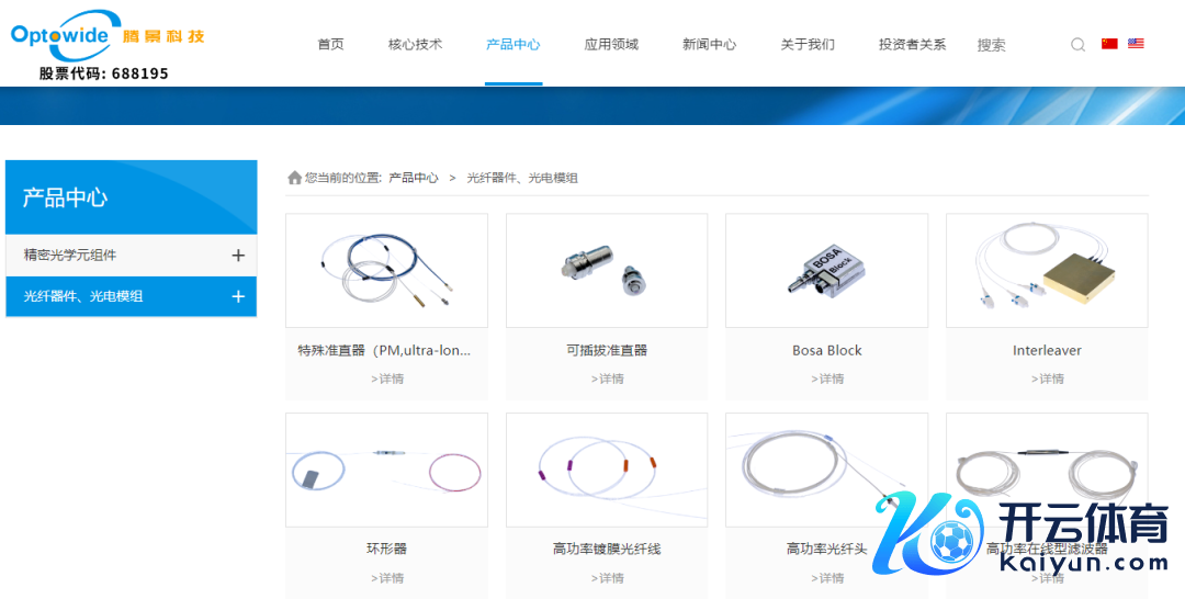 公开尊府领悟,腾景科技是专科从事各样精密光学元组件、光纤器件研发、分娩和销售的高新期间企业,居品主要期骗于光通讯、光纤激光等领域。