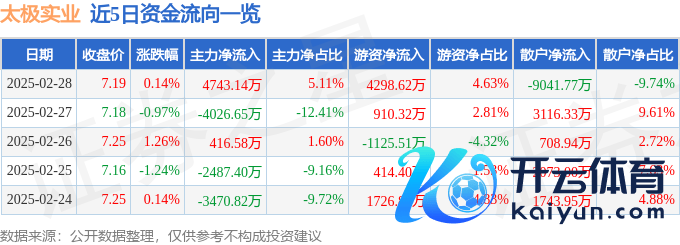 本站音信,放胆2025年2月28日收盘,太极实业(600667)报收于7.19元,高潮0.14%,换手率6.02%,成交量126.8万手,成交额9.28亿元。