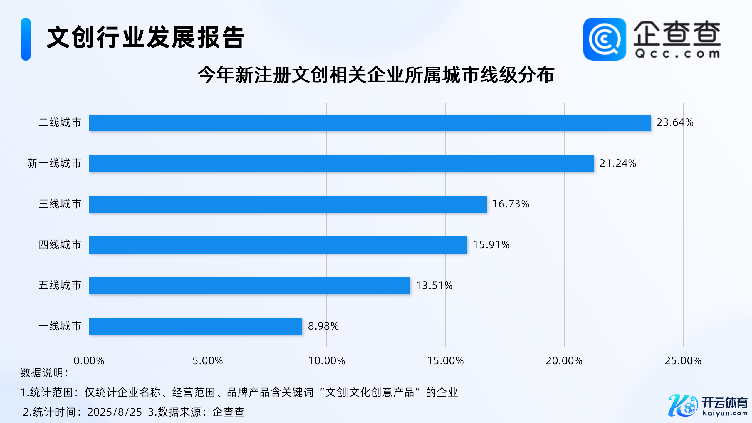 企查查数据表示,本年新注册的文创干系企业多漫衍在二线城市、新一线城市,区别占比23.64%、21.64%。