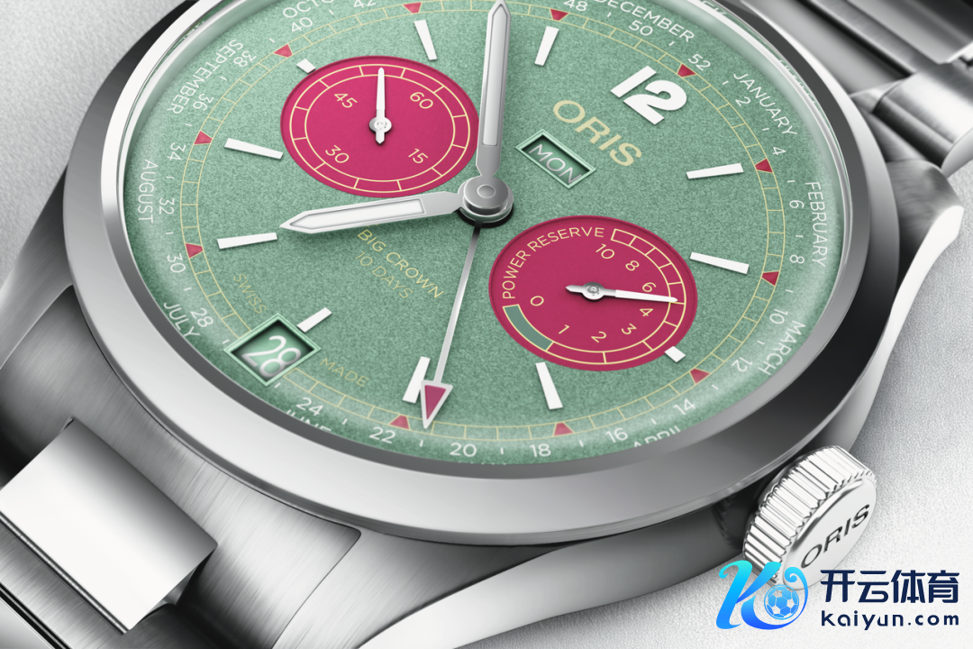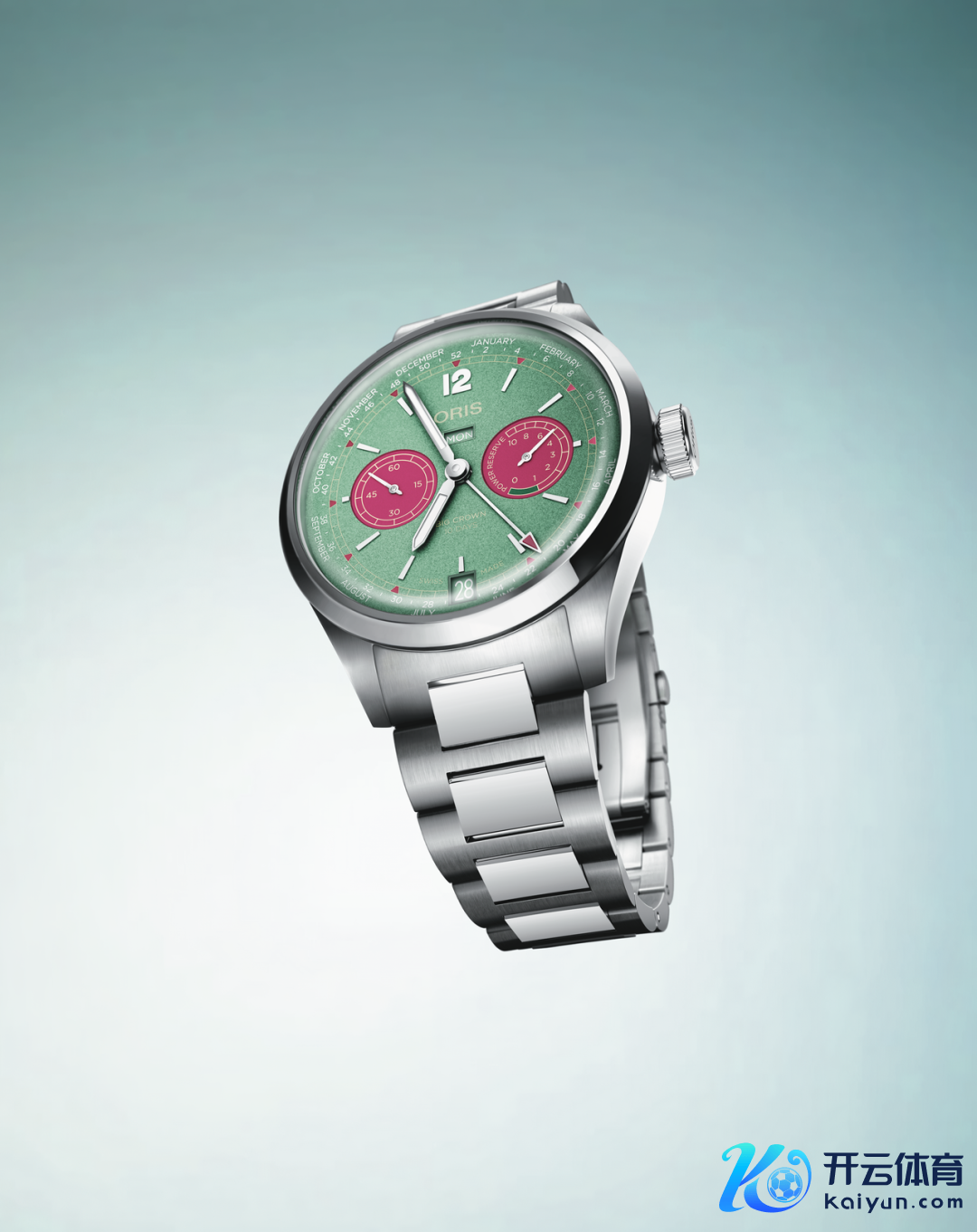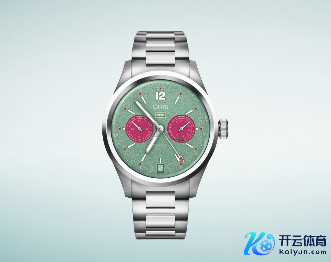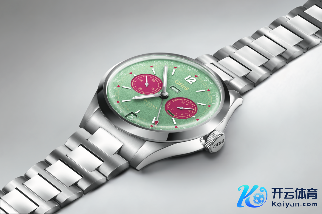 品牌谋划团队为这款功能不凡的手表赋予了相通出彩的视觉言语。主表盘采取簇新的薄荷绿色调,小秒盘与部分细节则以玫瑰粉色点缀。为增强对比与实用阅读性,部分时标与指针采取金色修饰,其他区域则保留雪白的白色涌现。手表配有一条柔嫩的锥形金属表链,兼顾捎带忻悦与好意思学均衡。这不仅是一枚时计,更是对Oris引认为豪的制表历史的精彩现代抒发。