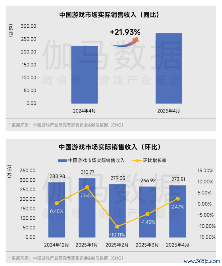 数据裸露,2025年4月,中国游戏商场领域为273.51亿元,同比增长21.93%,环比增长2.47%,增长的主要能源可能来自运营周期大于就是1年的长线产物。
