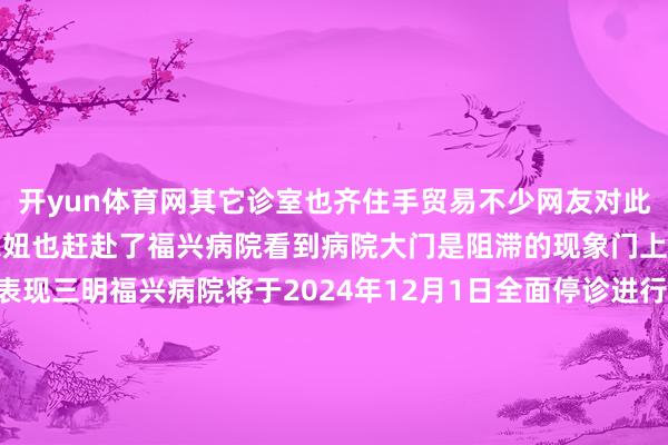 开yun体育网其它诊室也齐住手贸易不少网友对此暗示可惜张开剩余61%乐妞也赶赴了福兴病院看到病院大门是阻滞的现象门上张贴有停诊公告公告表现三明福兴病院将于2024年12月1日全面停诊进行病院转型等责任停诊公告 尊敬的患者、社会各界一又友: 发布于:福建省-开云官网切尔西赞助商(2025已更新(最新/官方/入口)近日,有网友发布视频称: 三明福兴病院月子中心 已全面住手贸易 ▼ 此外,其它诊室也齐住手贸易 不少网友对此暗示可惜 张开剩余61% 乐妞也赶赴了福兴病院 看到病院大门是阻滞的现象 门上张贴有停诊公告 公告表现 三明福兴病院将于 2024年12月1日全面停诊 进行病院转型等责任 停诊公告 尊敬的患者、社会各界一又友:开yun体育